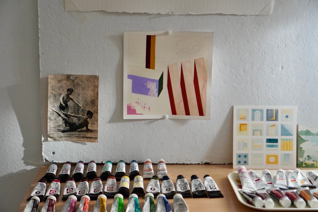 This week I attended “Pastoral,” choreographed by Tanowitz to music by Caroline Shaw, written in response to Beethoven’s Pastoral. The set design was by Sarah Crowner. I’ve been thinking a lot about the integration of dance and visual art. In my studio, I have pinned to my drawing board an image of Robert Rauschenberg’s set design for a Merce Cunningham piece “Summerspace”. I’m drawn to this idea of an all-encompassing environment, where dancers become moving elements within a larger composition, almost like movable pieces within a painting. Set and body merge fluidly into a single visual field.